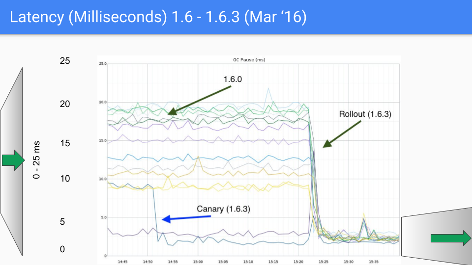 There were some bugs in there that we had to clean up and we did this during a minor release 1.6.3. This dropped latency down to well under 10 milliseconds, which was our SLO.