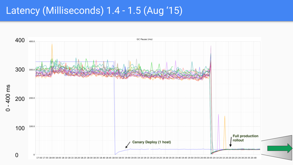 On our first release, which was in August of 2015, we saw a drop from around 300 - 400 milliseconds down to 30 or 40 milliseconds. This was good, order of magnitude good.