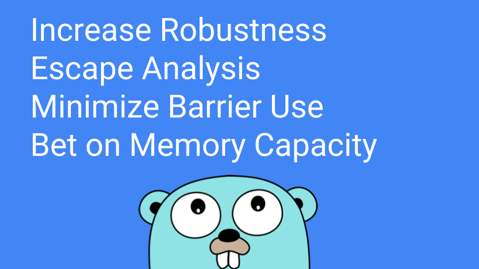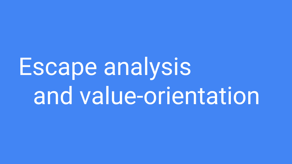 We also had escape analysis and it was getting better and better. Remember the value-oriented stuff we were talking about? Instead of passing a pointer to a function we would pass the actual value. Because we were passing a value, escape analysis would only have to do intraprocedural escape analysis and not interprocedural analysis.