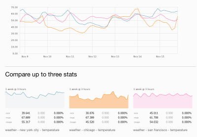 Here’s an example of a StatHat graph of the temperature in NYC, Chicago, and San Francisco: